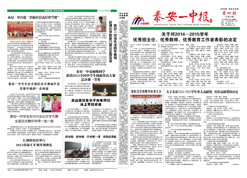 泰安一中校报(2015年第四期)